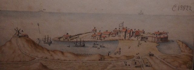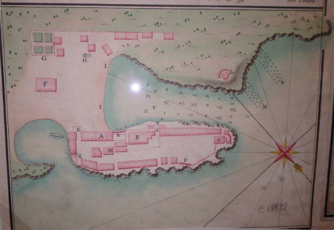 un moulin à vent équipé d'une couleuvrine, de 2 canons de 6 livres de balles (3kg), tournés vers les terres, d'un mât de signalisation où un pavillon blanc était envoyé à destination des bateaux qui voulaient entrer dans le port quand le vent de NW était frais, et que l'entrée de la passe, chahutée par les vagues brisant sur les récifs, représentait un danger pour les bâtiments.