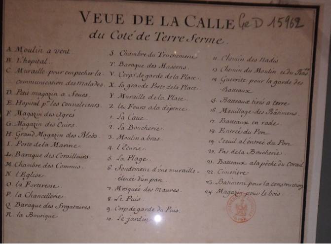 1) Massacarès : Vers le 10ème siècle, ce petit port s'appelle Mers-El-Kharez (signifiant le port aux breloques ou Massacarès en transcription européenne). Ce nom imagé, s'explique par le fait que les fonds marins recelaient des coraux, très recherchés à l'époque, qui étaient transformés en bijoux de toutes sortes. Dès le 9ème siècle, dit l'historien arabe El-Bekri, Mers-El-Kharez servait à la construction des navires que les Khalifes de Kairouan destinaient aux ravages des côtes de l'Empire byzantin. Vers 1150, Al-Idrisi, savant et prince musulman, rédige à la demande du roi chrétien Roger II de Sicile, une géographie du monde connu. La Calle y est décrite ainsi : " Au Nord, vis-à-vis, et à une forte journée de Béja, au bord de mer, est située Marsâ-El-Kharaz. C'est une petite ville entourée d'une forte enceinte et munie d'une citadelle. Les environs sont peuplés de nomades arabes. La prospérité des habitants repose sur la pêche au corail qui s'y trouve en grande quantité, et qui est supérieur en qualité à celui du reste du monde… Le banc y est exploité tous les ans. On y emploie en tout temps cinquante barques plus ou moins… ".