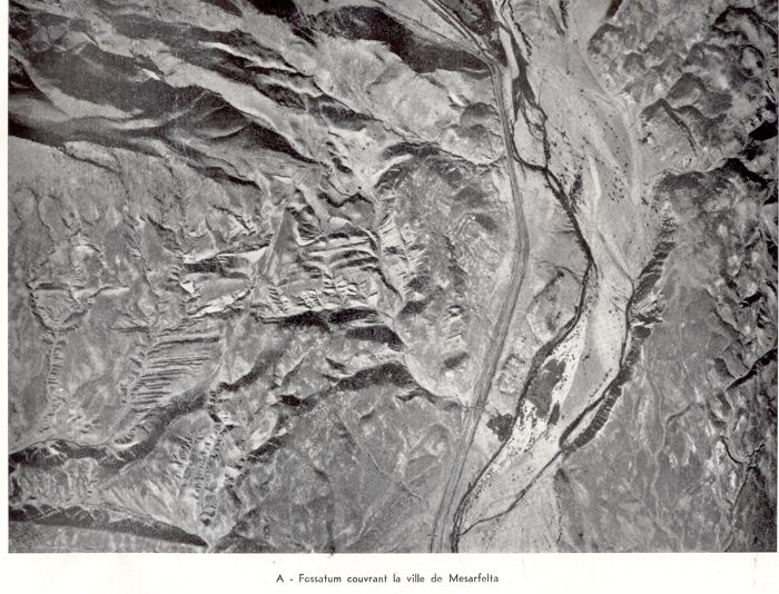 Le vol prend la direction Bounoura, dans le sens d'El Atteuf, via Dhaia Ben Dahoua. Une heure et demie durant, nous survolons la cité. Au-dessus de la vallée de M'tlili la terre est encore humide, preuve de l'importance des crues. Du ciel nous observons quelques écoliers quittant vers midi, leurs établissements. Tout un territoire sépare la commune d'El Atteuf de celle de M'tlili. Il est d'une aridité extrême. Seuls quelques sillons d'oueds creusent la roche à l'aspect basaltique. L'horizon, de part et d'autre, s'étale, nu, à perte de vue. El Atteuf apparaît enfin comme un joyau émergeant de la vallée.